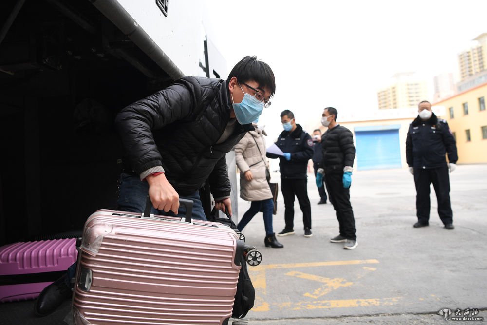 2月20日,平凉发往兰州的客运班车到达兰州客运中心后,旅客提取行李。新华社记者陈斌摄