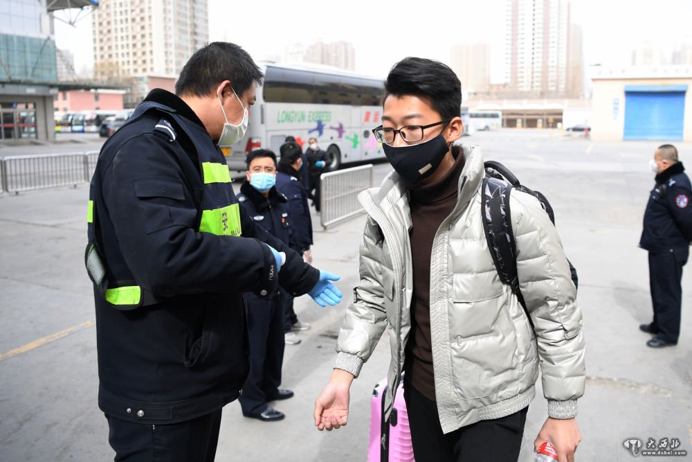 2月20日,旅客到达兰州客运中心后测量体温出站。新华社记者陈斌摄