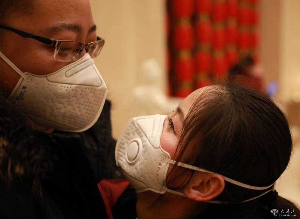甘肃省第二批援助湖北医疗队队员、甘肃省第二人民医院骨科主管护师谭锦柯(右)在出发前和丈夫王海默告别,王海默也是甘肃省第二人民医院的一位医生。新华社发(杜哲宇摄)
