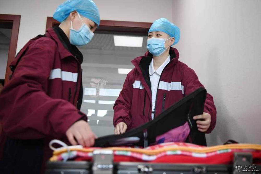 甘肃省第三批援助湖北医疗队队员、甘肃省妇幼保健院护士范美玲(右)在出征前整理行李。新华社记者陈斌摄