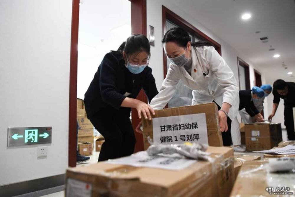 甘肃省妇幼保健院医务人员为该院前往湖北的甘肃省第三批援助湖北医疗队队员整理打包医用物资。新华社记者陈斌摄