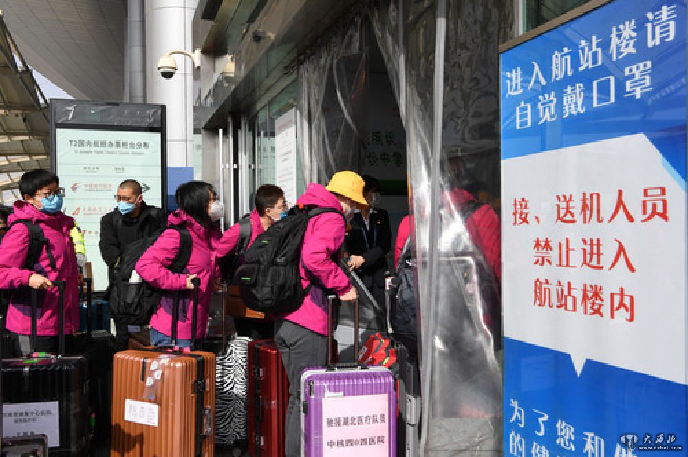 甘肃省第一批援助湖北医疗队的医护人员从兰州中川国际机场出发前往武汉。新华社发(杜哲宇摄)