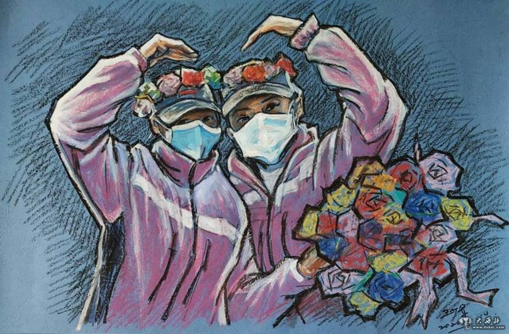 油画棒的美丽,甘肃省第二批援助湖北医疗队队员,甘肃省中医院白银分院的两位护士胡琰和刘巧梅在武汉东西湖方舱医院临时党支部的关怀下,留下了美丽的一刻。(甘肃省中医院白银分院供图)