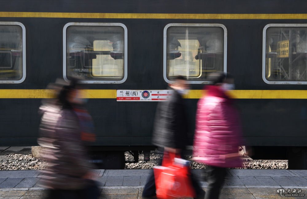 2月25日,旅客在兰州火车站站台准备乘车。
