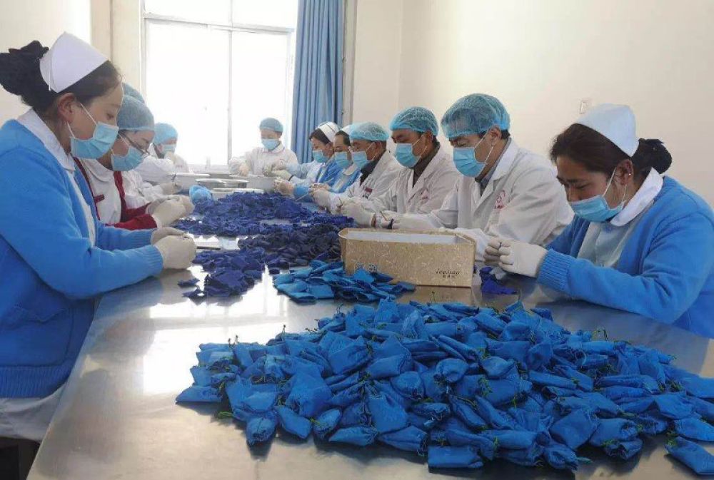 夏河县妇联得知藏医院在制作藏医防控药包存在困难,急需要一批药袋时,第一时间联系“陇原巧手”,“巾帼扶贫车间”“巾帼志愿者”,号召她们积极参与防疫药包加工,及时解决了急需难题。