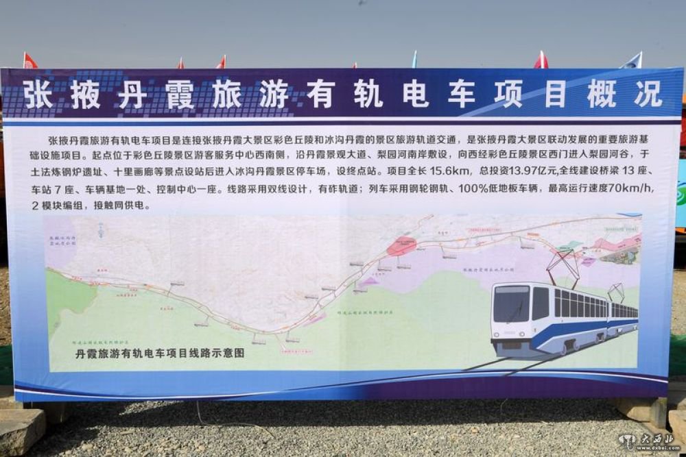 这是3月23日拍摄的甘肃省张掖市2020年一季度重点项目之一的张掖丹霞旅游有轨电车项目概况。新华社记者范培珅摄