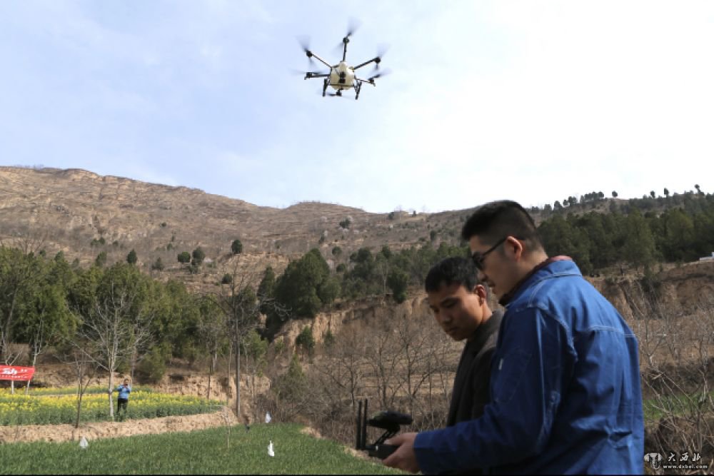 据无人机研发负责人李宏介绍,该款无人机原本用于电力架线,改装后约2分钟就可喷洒1亩地,是人工效率的30到40倍。目前,国网甘肃省电力公司定点帮扶的大桥镇王山村、李坪村、郭坝村、韩河村、小山村都有学徒来“取经”,学习无人机技术。