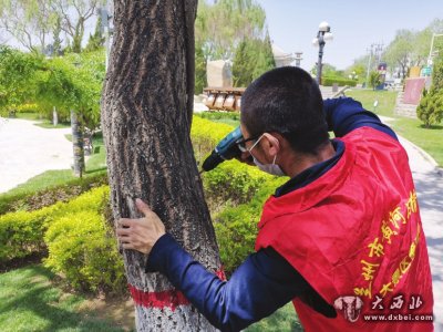 当天,记者在龙源公园找到了正在工作的园林工人,他们堪比植物“医生”。两人在箱子内拿出药剂,将每支震荡摇晃1-2分钟,药剂完全溶解后,准备给柳树做“小手术”。电钻就是手术刀,按照树胸径的大小不同,植物“医生”开始在树木上小心翼翼打孔。“如果是50至60厘米的树木,可以打四五个孔,药剂量用5支左右,如果是小树,树胸径在20厘米,用1支就可以啦。”园林工人边说边在打好孔口内斜插上药剂。记者注意到,这种试验药剂产品名称叫“国光植缘”,属高活性的植物生长调节剂,其生理功能与内源赤霉素相同,通过输入树体后,打破树体原有的激素平衡,从而抑制杨柳树的花芽分化,起到抑制开花的作用。园林工人说,试验杨柳飞絮防治,只能等到花开快结束时才能做“手术”,在头年使用后,要等到第二年春季才能观察到抑制飞絮的效果。这些药剂大约一晚上就输入到树木内了,等药剂输完后,再将这些空药剂瓶子收回,以免让市民拿走发生意外。