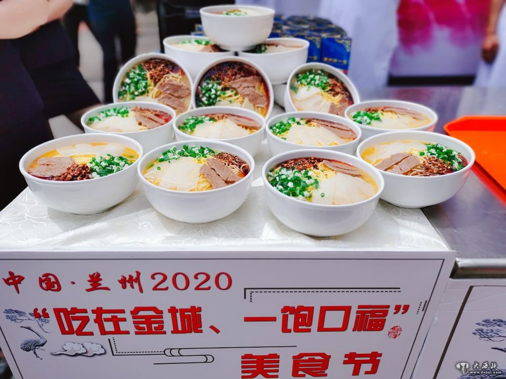 这是“吃在金城·一饱口福”美食节活动现场一处牛肉面展销摊位。新华社记者郎兵兵摄