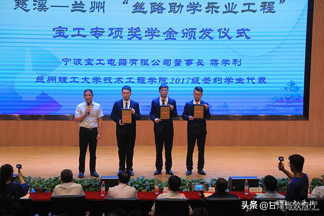 当天,慈溪市组织13家企业赶赴兰州开展战略合作,并和当地6所院校签订了校企合作协议。“丝路助学乐业工程”启动仪式上,宝工电器总经理蒋学利为兰州理工大学技术工程学院3名学生代表颁发企业专项奖学金,正式开启慈溪—兰州“丝路助学乐业工程”的征程。