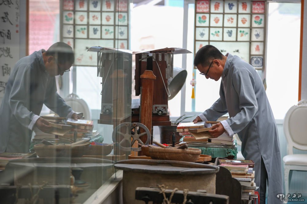 7月10日,馆长王积稼在自己开办的嘉禾博物馆内整理书籍。新华社发(马希平摄)