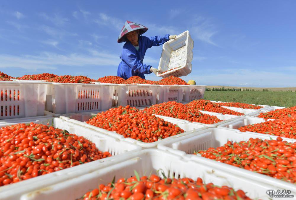 7月19日,在甘肃省张掖市高台县黑泉镇十坝村,农民将采摘的枸杞装箱。新华社发(郑耀德摄)