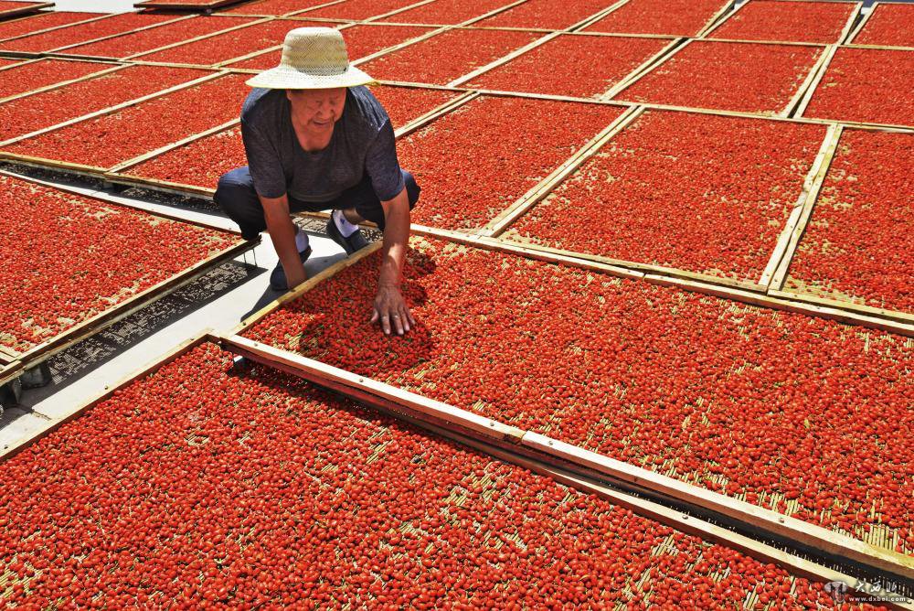 7月19日,在甘肃省张掖市高台县黑泉镇十坝村,农民在晾晒枸杞。新华社发(郑耀德摄)