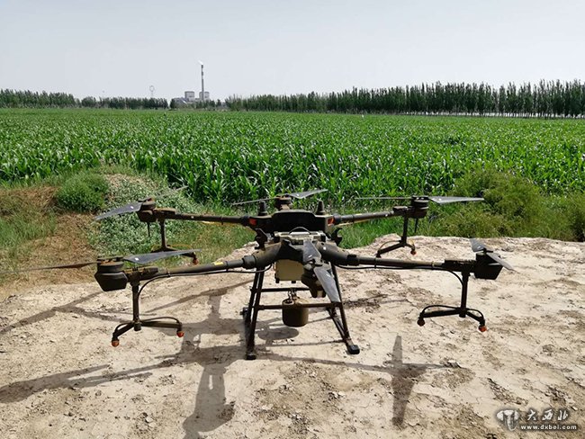 鑫报/大西北网讯 “突突突突……”伴随着一阵旋翼转动声,一架无人机从千亩大田的上方飞过,循着设定的航线,喷洒出雾状水汽,气压“吹散”了玉米秆,水汽洒入玉米苗。这是7月22日,兰州石化三联公司景泰农场对8900亩玉米进行现场喷药的一幕,这也是景泰农场首次使用无人机高空喷洒农药。