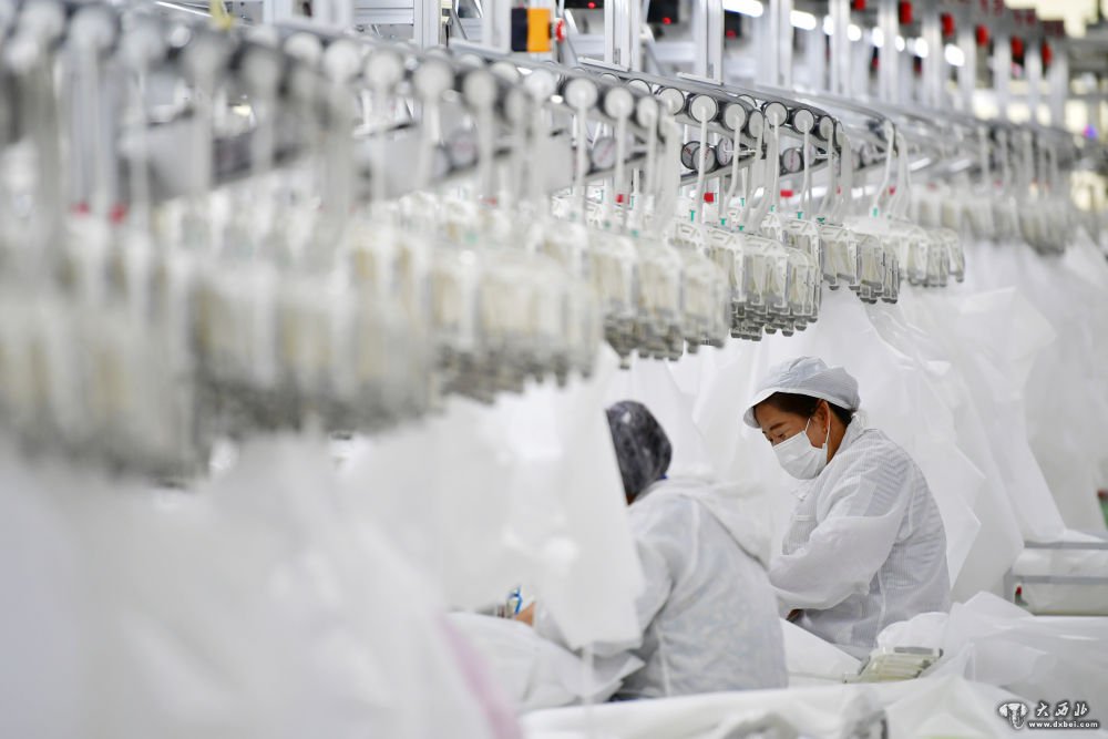 8月9日,甘肃拓奇扶贫车间的员工在服装加工生产线上作业。新华社记者邢广利摄