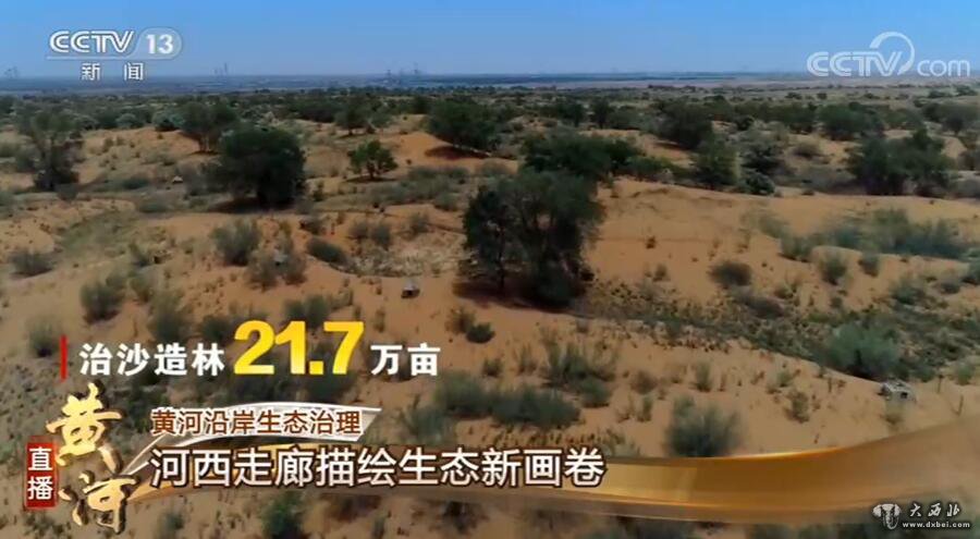 这里是张掖市黑河滩,一片片新栽的胡杨在当地林场职工的呵护下已经成林。从2017年开始,张掖集中造林160多万亩,让昔日“风吹石头跑”的戈壁滩披上了绿装。