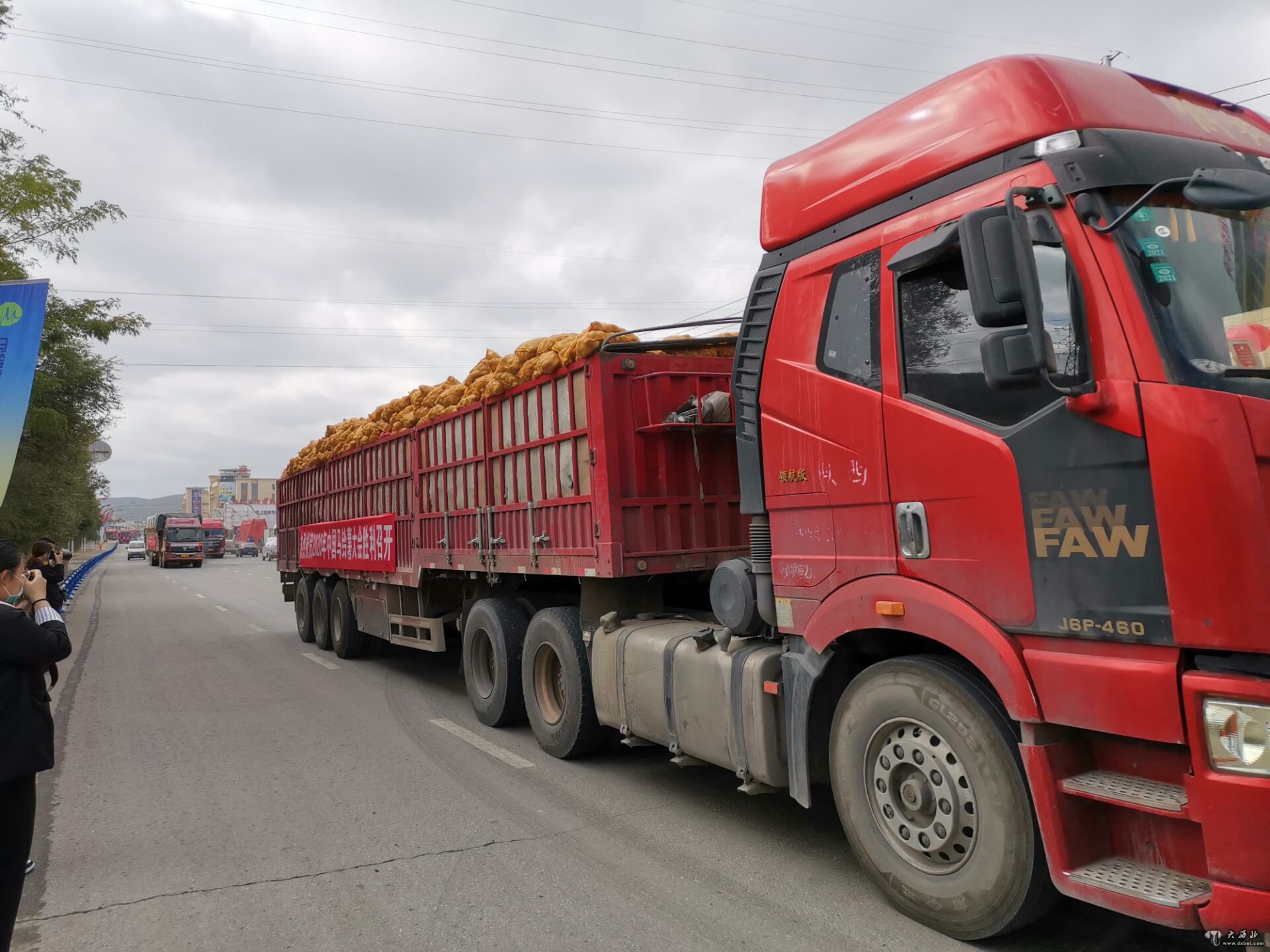 鑫报/大西北网讯(记者王志俭) 9月26日上午10时许,定西马铃薯批发市场前彩球高悬。2020年中国马铃薯大会鲜薯发车仪式在这里举行。30辆鲜薯重卡车,装载着1000多吨定西马铃薯驶向徐州、武汉、广州到等大中城市,此举标志着今年安定区马铃薯销售正式拉开帷幕。今年安定区全区马铃薯种植面面积达85万亩以上,总产将达到150万吨,预计将有60万吨优质商品薯源销往全省各地和华北、华中等大中端市场和国际市场。