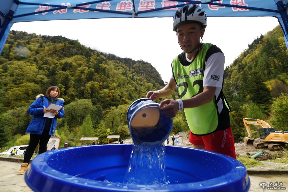 9月26日,在宕昌县官鹅沟大景区,参赛选手进行取水比赛。新华社记者范培珅摄