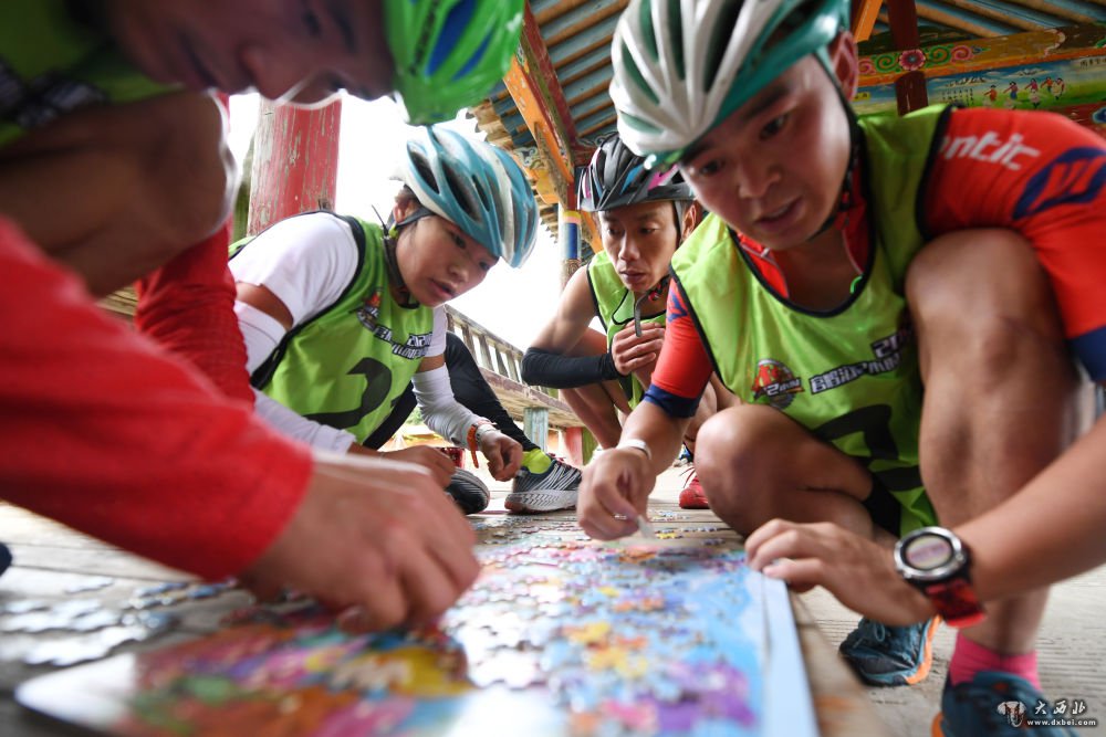 9月26日,在宕昌县官鹅沟大景区,参赛选手进行智力拼图。新华社记者范培珅摄