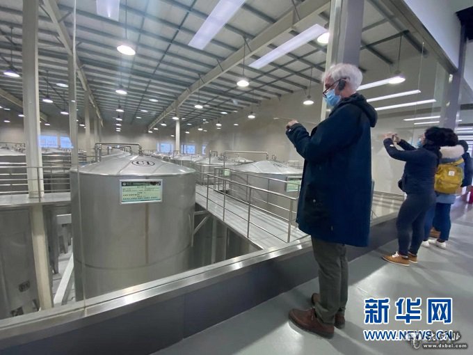 11月24日,在甘肃省陇南市一处油橄榄生产基地,与会外宾罗伯特·沃克(左一)在参观拍照。新华社记者 王朋 摄