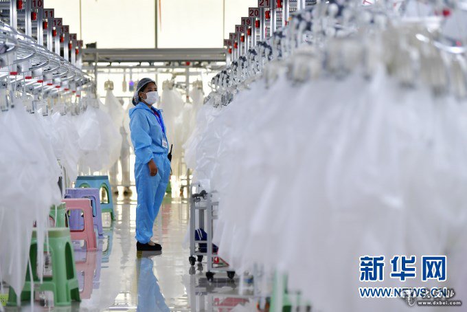 在临夏回族自治州积石山县,依托东西部扶贫协作平台引进的服装加工企业甘肃拓奇扶贫车间的员工在服装加工生产线上作业(8月9日摄)。新华社记者 陈斌 摄
