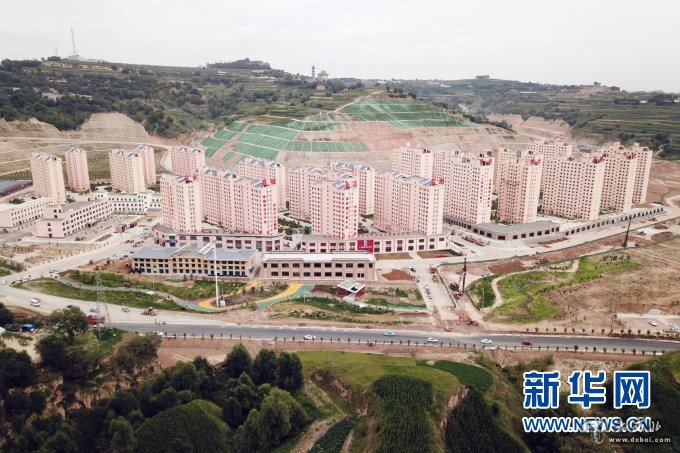这是8月3日在东乡族自治县拍摄的县城南区易地扶贫搬迁安置小区(无人机照片)。新华社记者 范培珅 摄