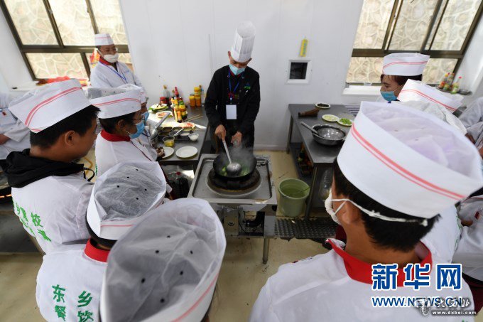 东乡县职业技术学校烹调面点培训班学员在上课(4月21日摄)。新华社记者 范培珅 摄
