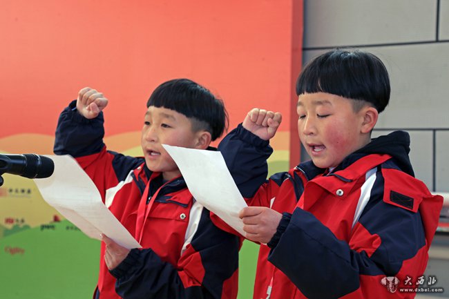 小学生运动员代表在开幕式上发言。 贾笑云 摄