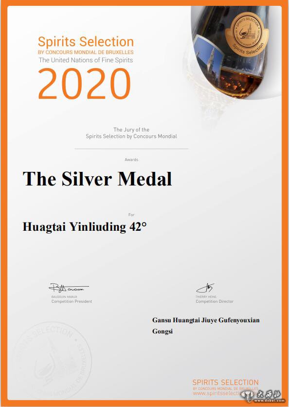 皇台银六鼎斩获第21届比利时布鲁塞尔国际烈性酒大奖赛银奖