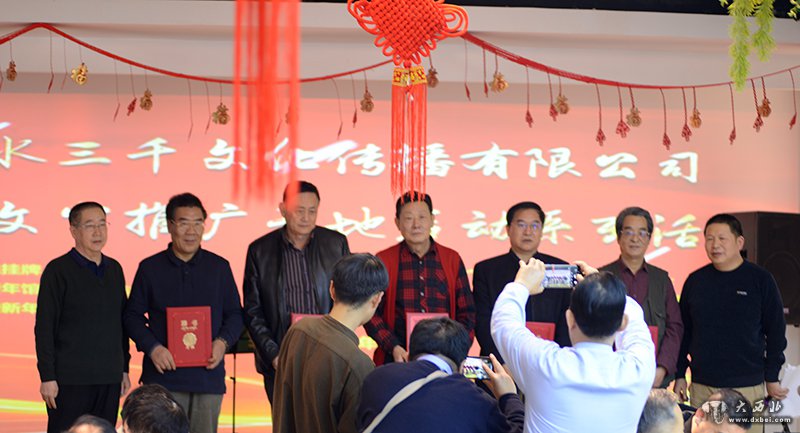 甘肃偌水三千文化传播有限公司省级语言文字推广基地聘请了张文轩、张克复、马保平、李恒滨、尚墨、刘满才、秋子、秦理斌、陈永革等专家和特聘艺术家。在活动现场颁发了聘书。