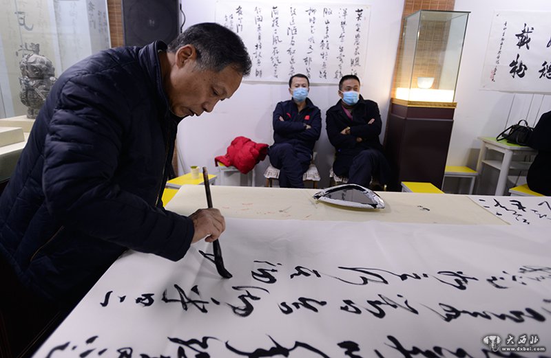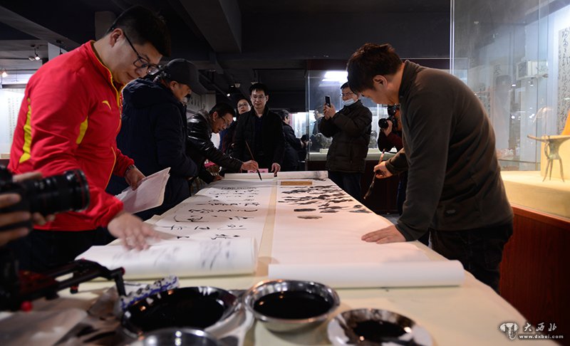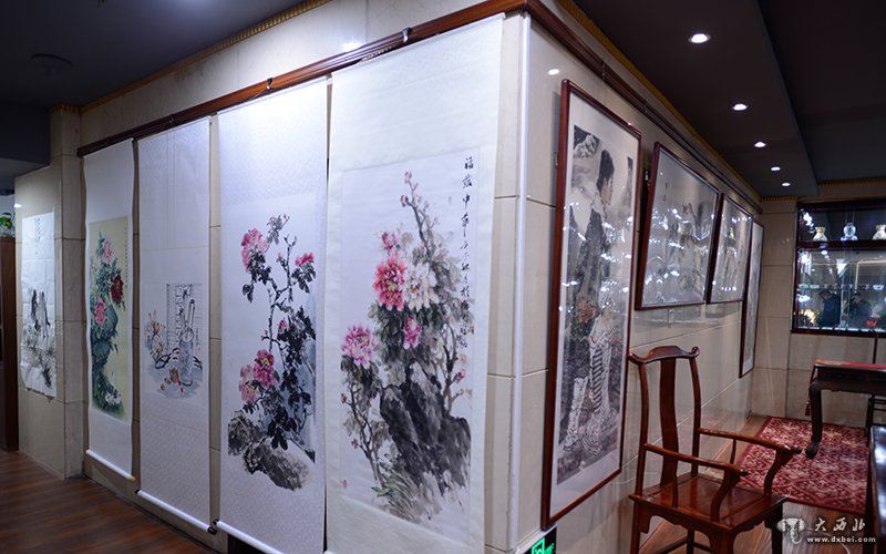 当天举行的迎新年馆藏名家书法作品展览展出了李恒滨、刘满才、秋子、秦理斌、陈永革、等著名书法家的作品。迎新年国画名家作品邀请展,展出了裴林安、陈少青、白恩平、亢小军等国画艺术家的精品。据了解,此次展出的书画作品上百幅。与会者认真品评展出作品,到场的书画家们也在敦煌风当代艺术馆活动现场泼墨挥毫,妙笔丹青。一时墨香四溢,彩笔斗艳,让观者大饱眼福。