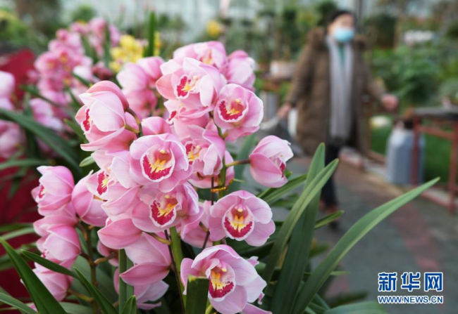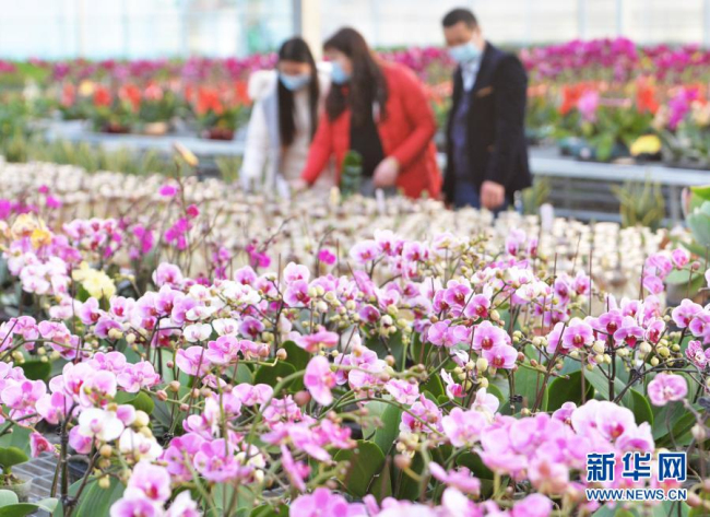 2月2日,顾客在甘肃省临夏县一花卉市场选购蝴蝶兰。新华社发(史有东 摄)