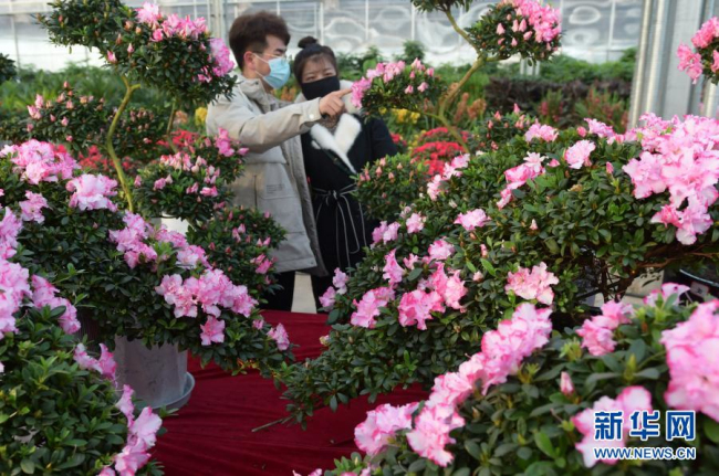 2月2日,顾客在甘肃省临夏县一花卉市场选购鲜花。新华社发(史有东 摄)