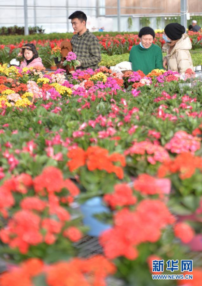 春节临近,甘肃省临夏回族自治州临夏县花卉市场迎来销售旺季,吸引众多顾客前来选购鲜花,迎接新春佳节的到来。