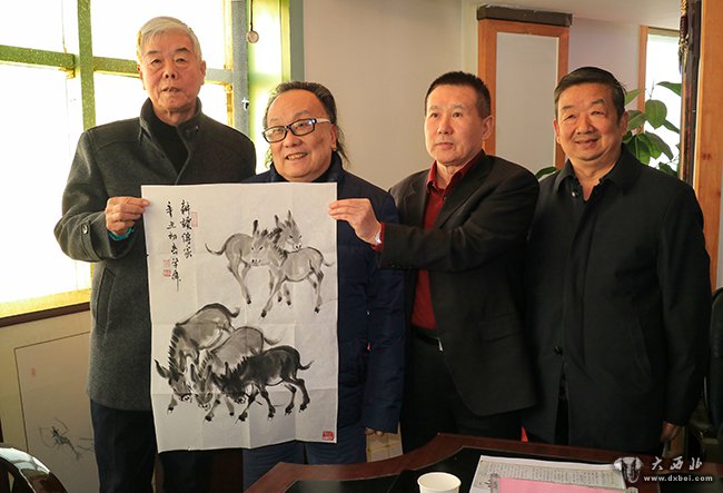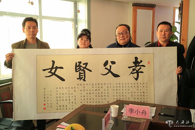 向身残志坚的金鑫先生赠送书画作品。 贾笑云 摄