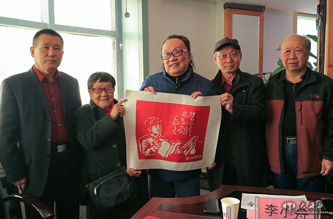 向身残志坚的金鑫先生赠送剪纸作品。 贾笑云 摄