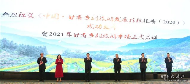 大西北网讯 2021年3月19日,甘肃省文化和旅游厅联合新华社中国信息社等单位,在兰州举行2020年度中国·甘肃乡村旅游发展指数发布暨2021年甘肃乡村旅游市场启动仪式和“万车游陇原”首发活动。省委宣传部副部长、省文化和旅游厅党组书记、厅长陈卫中,新华社甘肃分社分党组书记、社长任卫东,甘肃文旅集团总经理杨宇宏,省文化和旅游厅党组成员、副厅长田学功,中国经济信息社总裁助理吴学俊,北京第二外国语学院旅游科学学院副院长邓宁、甘肃文旅企业家俱乐部理事长柴林,甘肃旅游智库秘书长、兰州文理学院旅游学院院长高亚芳出席活动,共同见证指数发布和乡村旅游市场启动。陈卫中、任卫东为“万车游陇原”首发团车手代表授旗,陈卫中、吴学俊分别代表主办单位致辞。