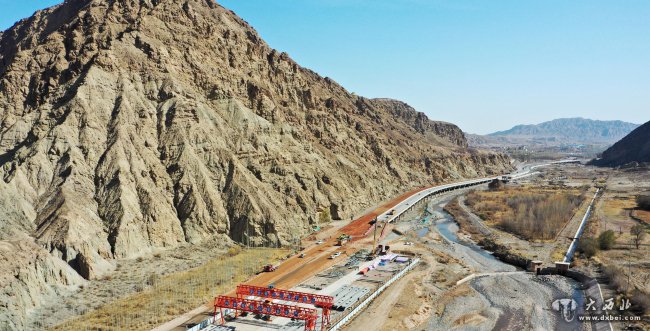 4月17日,甘肃省张掖市肃南裕固族自治县境内的S18张掖至肃南公路张掖至康乐段工程梨园河3号特大桥正在加紧施工。