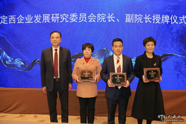 李忠鑫院长为定西企业发展研究委员会院长汤宝金、副院长李恺、周玉莲授牌。 贾笑云 摄