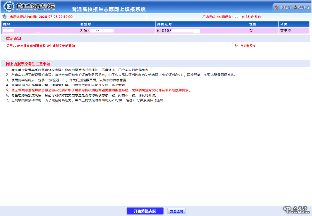 10、凡没有使用“志愿提交密码”,直接点击“安全退出”按钮的考生,志愿信息将不会保存。