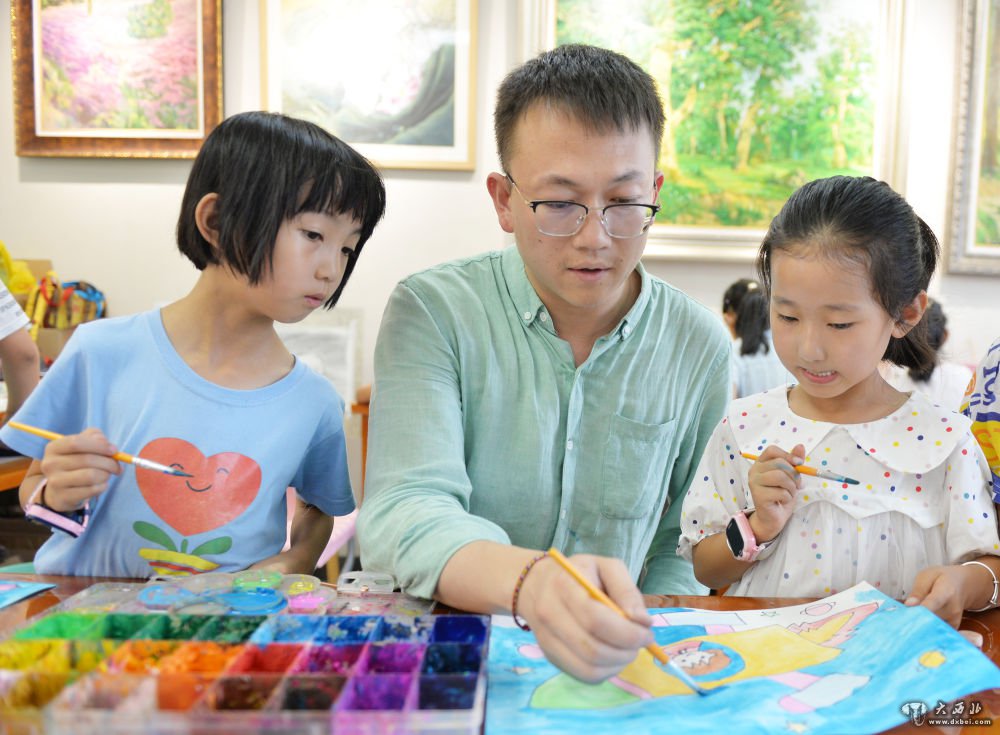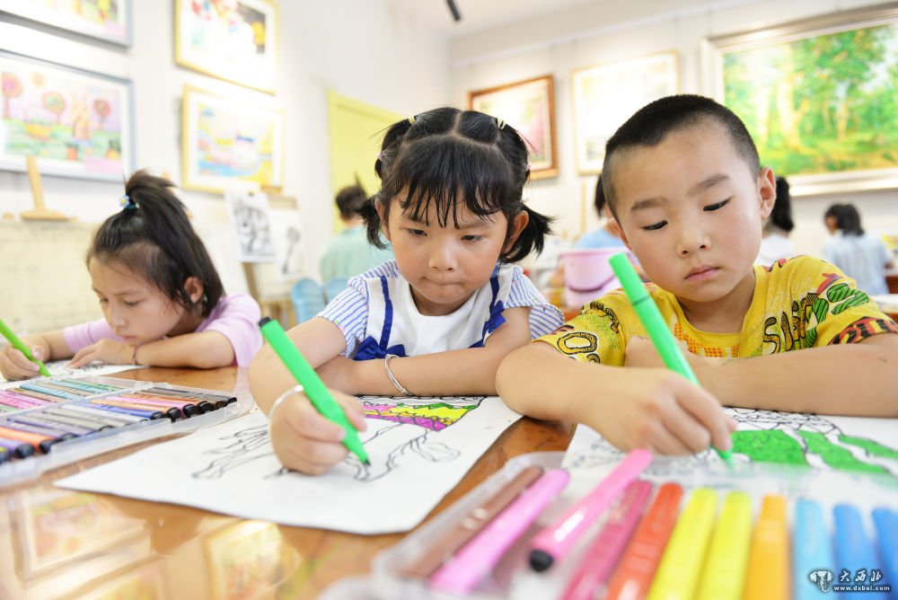 7月17日,小朋友在永靖县少年宫学习绘画。新华社发(史有东摄)
