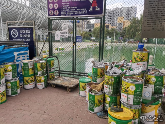 大西北网讯(记者王志俭文图)8月16日,记者途经兰州体育公园,发现往日红火的篮球场和乒乓球场冷冷清清。篮球场内的篮球架已被拆除放在场外,而几个乒乓球台也被放挪到了场外。篮球场刷了新漆,乒乓球场铲除了了原来的塑面。两个球场上堆放了一排排油漆桶,看来是球场地的备用油漆。