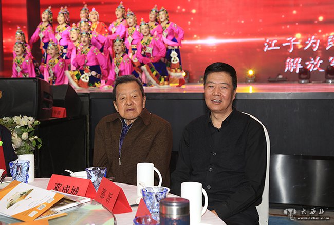 甘肃省政协原副主席邓成城(左)等出席百叟宴活动。 贾笑云 摄
