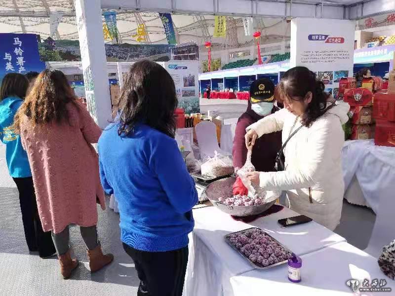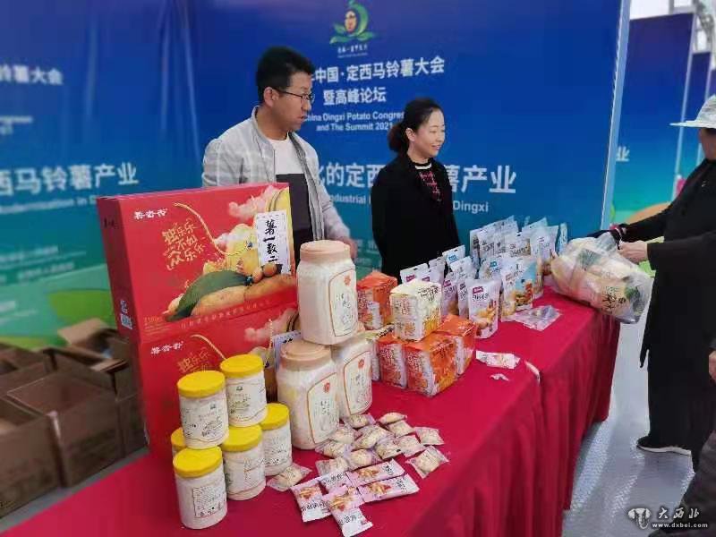 向体育馆两侧望去是一家连一家的商家,或是展示马铃薯深加工产品,或是马铃薯生产加工企业的产品展示。尤其场内中间定西市所辖通渭、临洮、漳县、岷县、渭源、陇西六县和安定区的展馆分外引人注目。