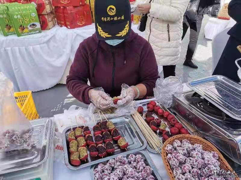 旁边展台上几名女员工正在加工山楂系列产品,品种有山楂糖雪球、冰糖葫芦等产品。陪同采访的安定区宣传部副部长曹应森说,山楂糖雪球不仅外表好看且味道非常不错,在定西不仅平时销售火爆,就连春节期间也销售的十分火爆。记者看到加工冰糖葫芦的员工,先把山楂中间切开然后重新往里填馅。员工说馅子有豆沙、南瓜、黑白糯米等六个品种,味道各一能满足不同年龄段的消费者。山楂不仅是人们喜爱的美食,同时它还是一味中药,具有消食健胃、食欲不振、行气散瘀、化浊降脂、减肥健体等功能,尤其对老人、小孩、妇女身体特别有益。听到员工给记者介绍山楂的益处后,旁边几名女顾客围上来购买山楂产品。