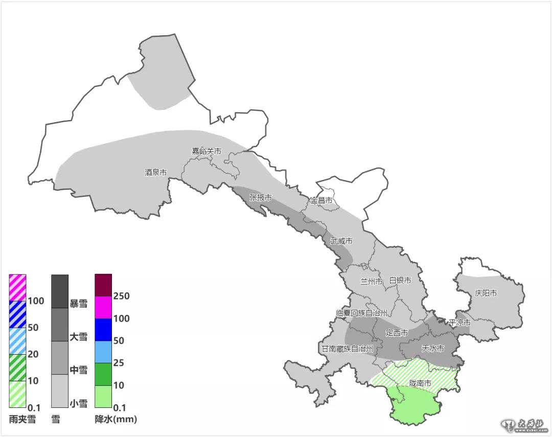 降水预报:28~29日,河西五市部分地方有小雪,祁连山区有中雪;河东大部阴有小雪,其中,天水、平凉、庆阳、定西、临夏等市州及甘南州北部,陇南市北部局部地方有中雪(图2),主要降雪时段在28日白天至29日凌晨,期间,陇南市南部、甘南州东南部以降雨为主。