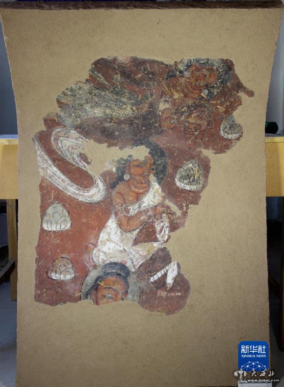 新华社兰州12月15日电(记者白丽萍)记者15日从甘肃省武威市天梯山石窟保护研究所了解到,敦煌研究院在对天梯山石窟进行搬迁壁画彩塑修复过程中,发现一幅完整的北凉飞天壁画。