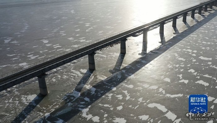 这是12月25日拍摄的酒额铁路黑河1号特大桥(无人机照片)。新华社记者陈斌摄