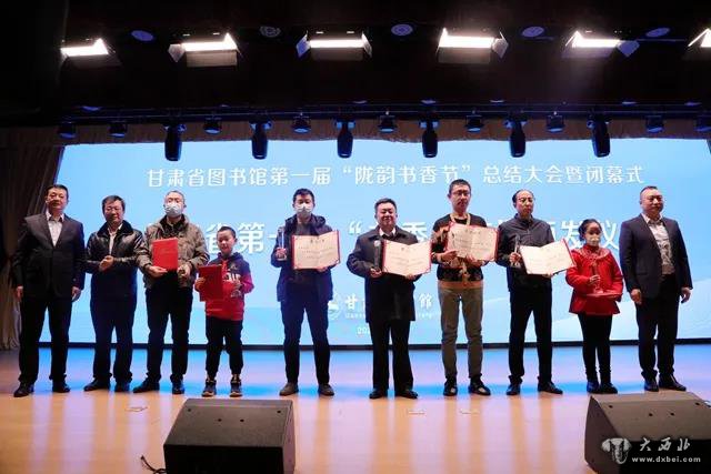 闭幕仪式上,播放了第一届“陇韵书香节”活动总结短片和书香家庭宣传短片,以短视频形式公布了“陇韵书香节”形象标识(LOGO)方案,莅临领导为“甘肃省第一届书香家庭”获得者、“红色经典阅读点亮爱党红心”活动获奖者颁奖。