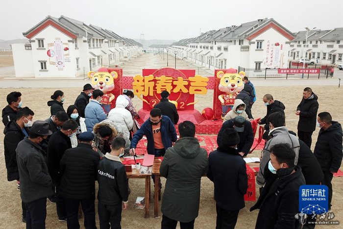 1月25日,在兰州新区舟曲避险搬迁安置点,舟曲地质灾害避险搬迁第一临时党支部组织书法家给搬迁群众送春联。新华社记者范培珅摄